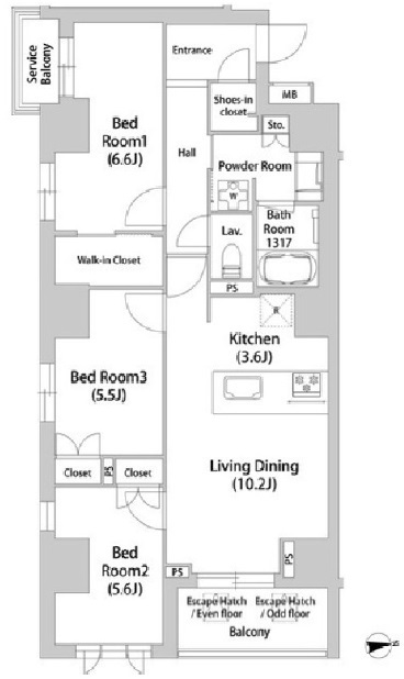 | 間取り | 3LDK (洋室6.6畳、洋室5.6畳、洋室5.5畳) | ||