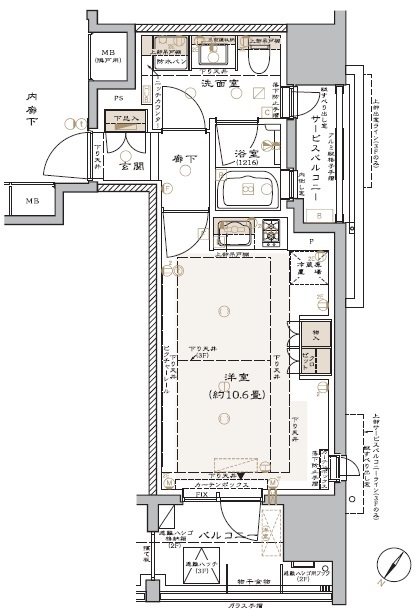 | 間取り | 1ワンルーム (洋室10.6畳) | ||