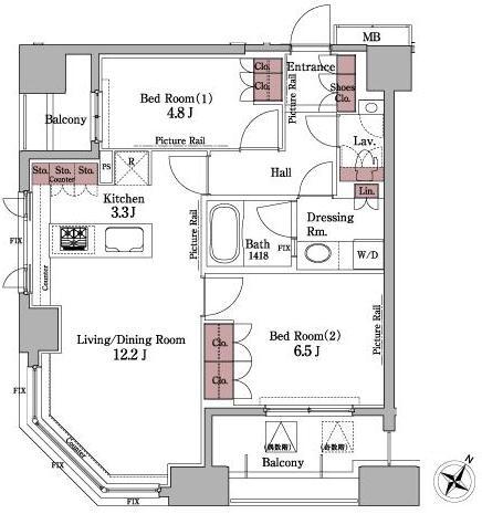| 間取り | 2LDK (洋室6.5畳、洋室4.8畳、LDK15.5畳) | ||