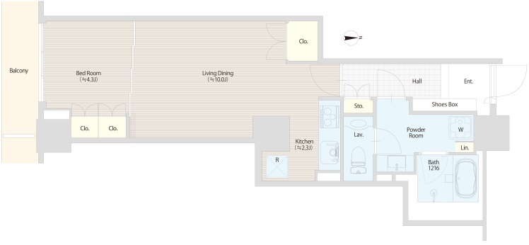 | 間取り | 1LDK (洋室4.3畳、LDK12.3畳) | ||