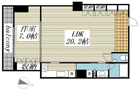 | 間取り | 1LDK (洋室7畳、LDK20.2畳) | ||