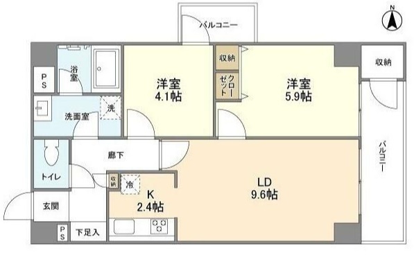 | 間取り | 2LDK (洋室5.9畳、洋室4.1畳、LDK12畳) | ||