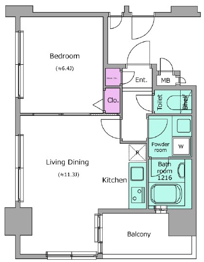 | 間取り | 1LDK (洋室6.4畳、LDK11.3畳) | ||