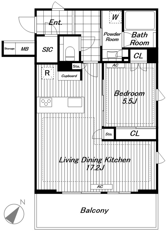| 間取り | 1LDK (洋室5.5畳、LDK17.2畳) | ||