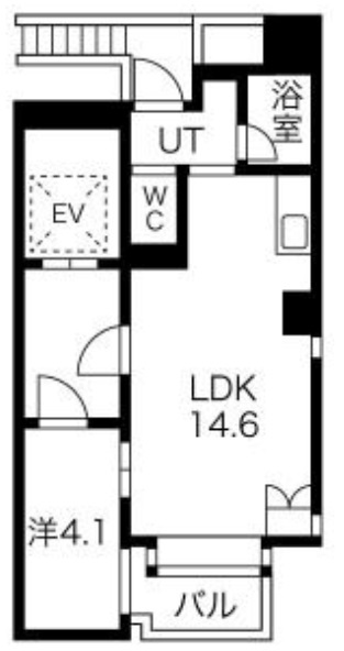 | 間取り | 1LDK (洋室4.1畳、LDK14.6畳) | ||