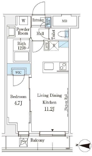 | 間取り | 1LDK (洋室4.7畳、LDK11.2畳) | ||