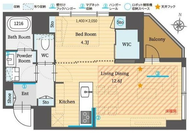 | 間取り | 1LDK (洋室4.3畳) | ||