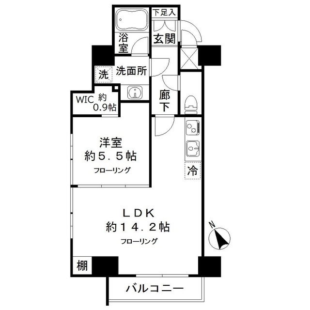 | 間取り | 1LDK (洋室5.5畳、LDK14.2畳) | ||