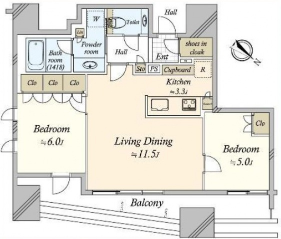 | 専有面積 | 60.52㎡ (18.3坪) | 構造・階数・階 | RC 地上14階建 地上14階部分 |