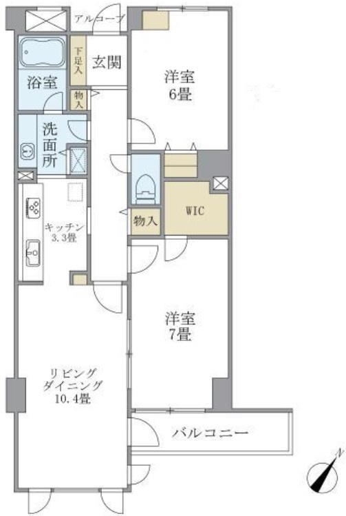 | 間取り | 2LDK (洋室7畳、洋室6畳、LDK13.7畳) | ||