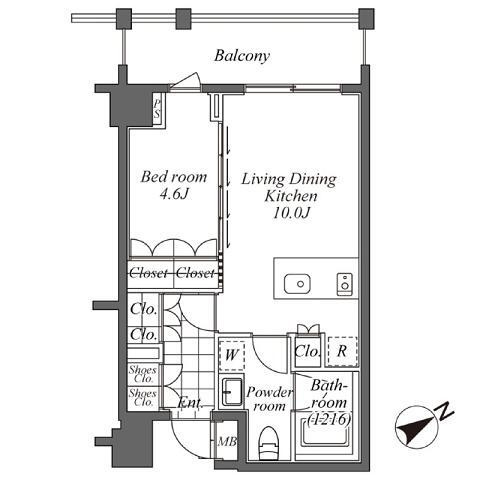 | 間取り | 1LDK (洋室4.6畳、LDK10畳) | ||