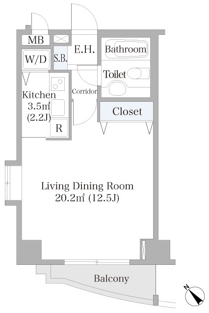 | 間取り | 1K (洋室12.5畳、K2.2畳) | ||