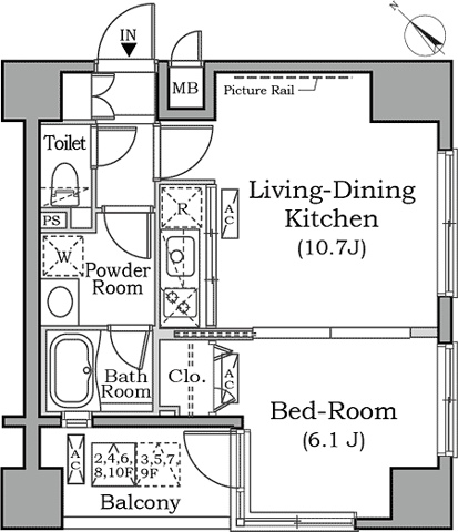 | 間取り | 1LDK (洋室6.1畳、LDK10.7畳) | ||