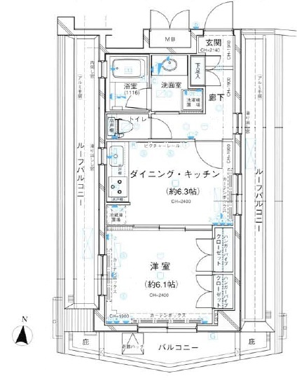 | 間取り | 1DK (洋室6.1畳、DK6.3畳) | ||