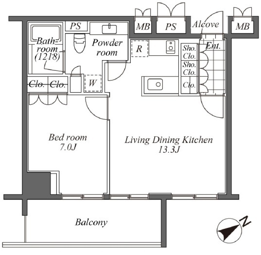 | 間取り | 1LDK (洋室7畳、LDK13.3畳) | ||