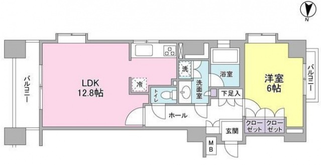 | 間取り | 1LDK (洋室6畳、LDK12.8畳) | ||