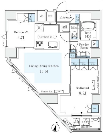 | 間取り | 2LDK (洋室8.2畳、洋室4.7畳、LDK18.5畳) | ||