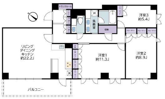 | 間取り | 3LDK (洋室11.3畳、洋室8.9畳、洋室5.4畳、LDK22.2畳) | ||