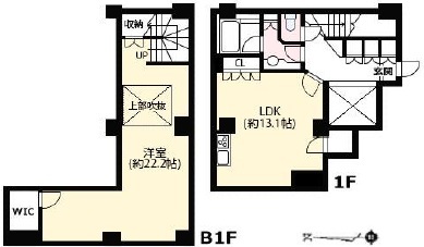 | 間取り | 1LDK (洋室22.2畳、LDK13.1畳) | ||