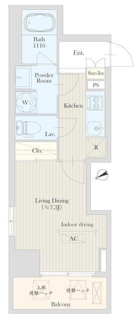 | 専有面積 | 25.42㎡ (7.68坪) | 構造・階数・階 | RC 地上10階建 地上8階部分 |