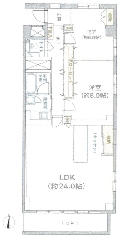 | 間取り | 2LDK (洋室8畳、洋室6畳、LDK24畳) | ||