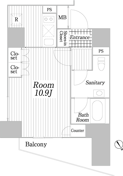 | 間取り | 1K (洋室10.9畳) | ||
