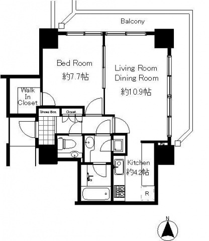 | 間取り | 1LDK (洋室7.7畳、LDK15.1畳) | ||