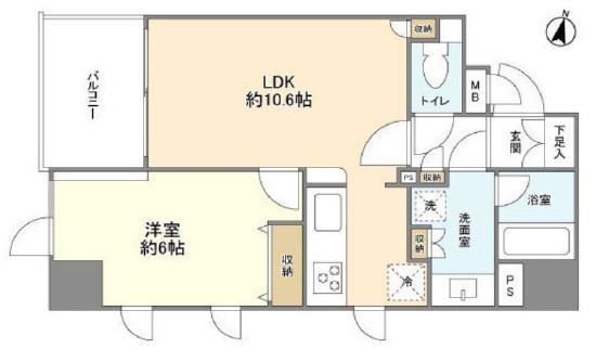 | 間取り | 1LDK (洋室6畳、LDK10.6畳) | ||