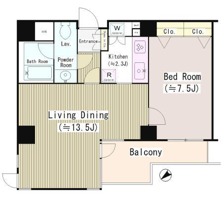 | 間取り | 1LDK (洋室7.5畳、LDK15.8畳) | ||