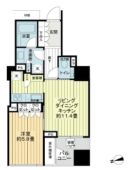| 間取り | 1LDK (洋室5.8畳、LDK11.4畳) | ||