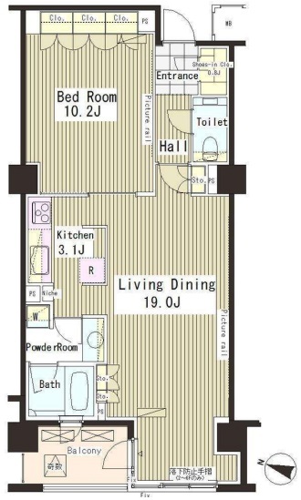 | 間取り | 1LDK (洋室10.2畳、LDK22.1畳) | ||
