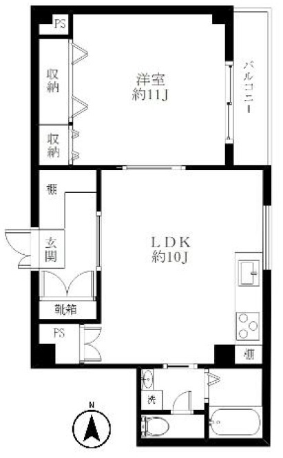 | 間取り | 1LDK (洋室11畳、LDK10畳) | ||