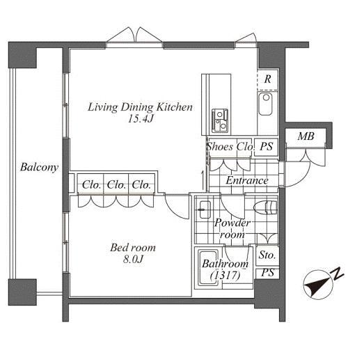 | 間取り | 1LDK (洋室8畳、LDK15.4畳) | ||