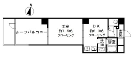 | 間取り | 1DK (洋室7.5畳、DK6.3畳) | ||